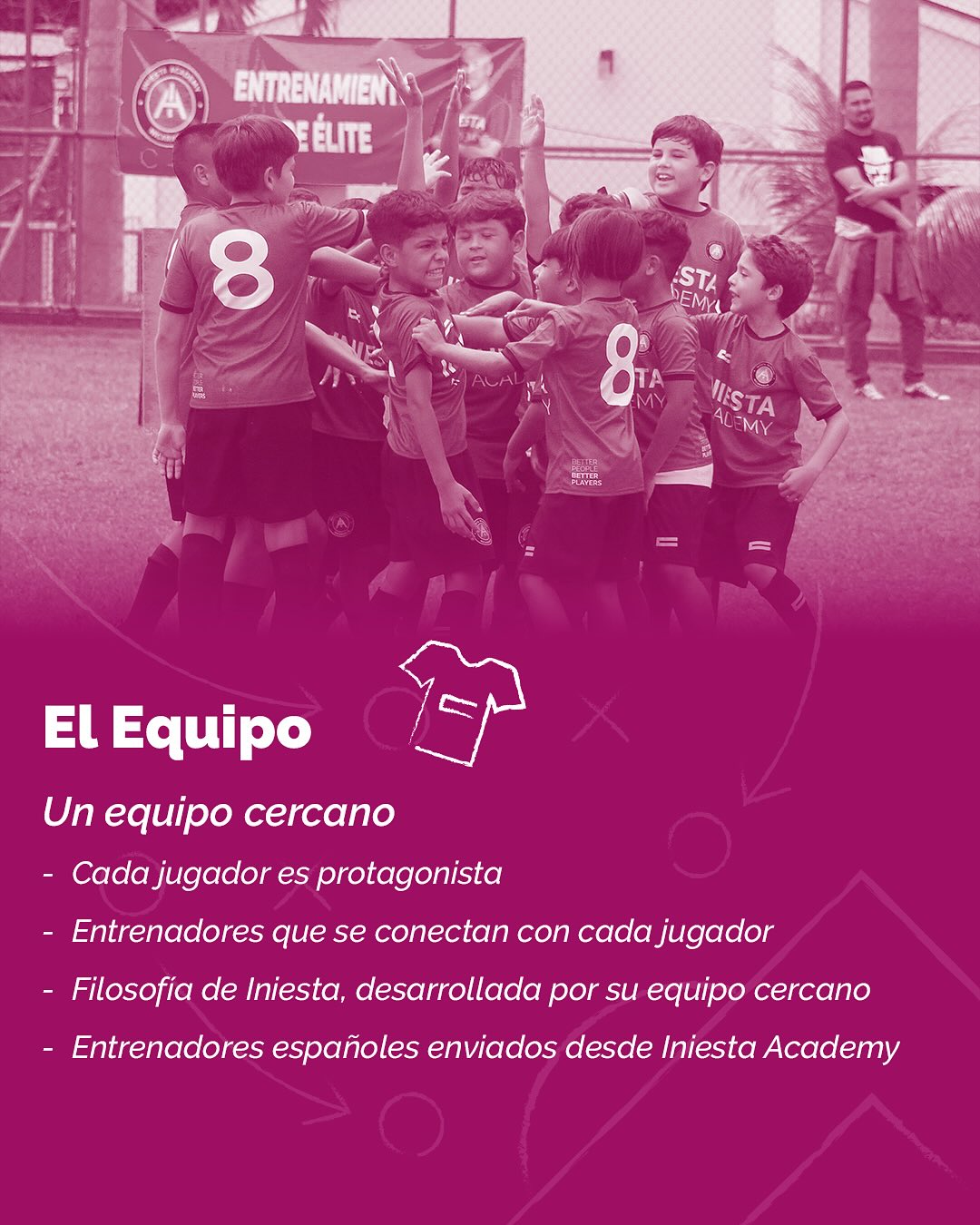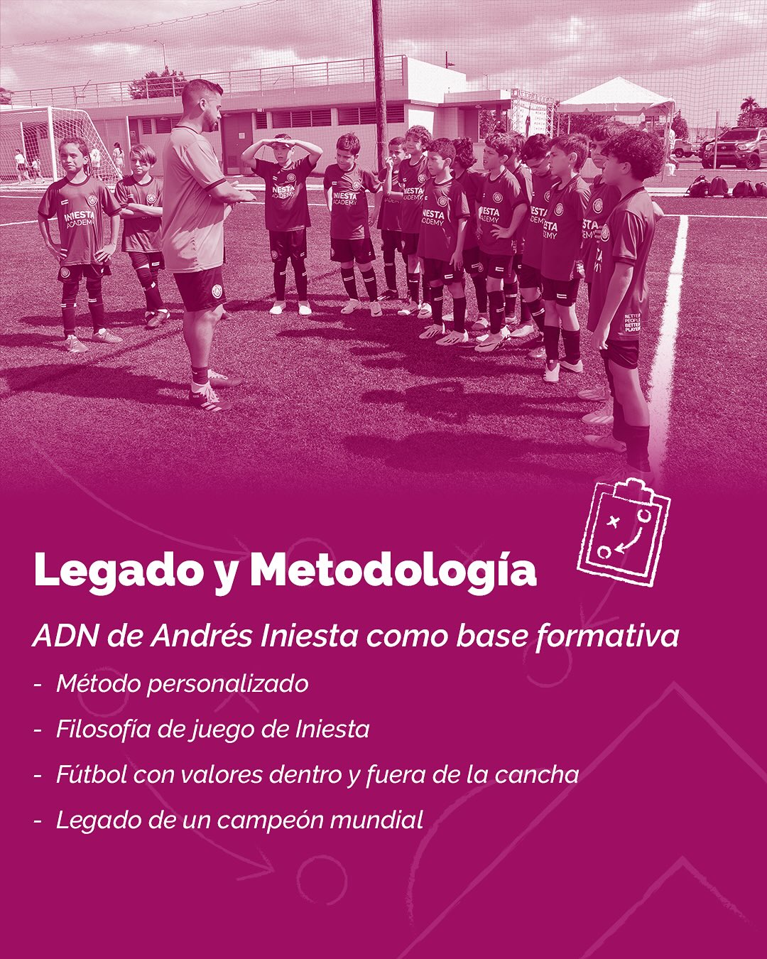 En la academia impulsada por Andrés Iniesta, JMD participa activamente en el desarrollo técnico, táctico y humano de jóvenes futbolistas, transmitiendo una metodología basada en: